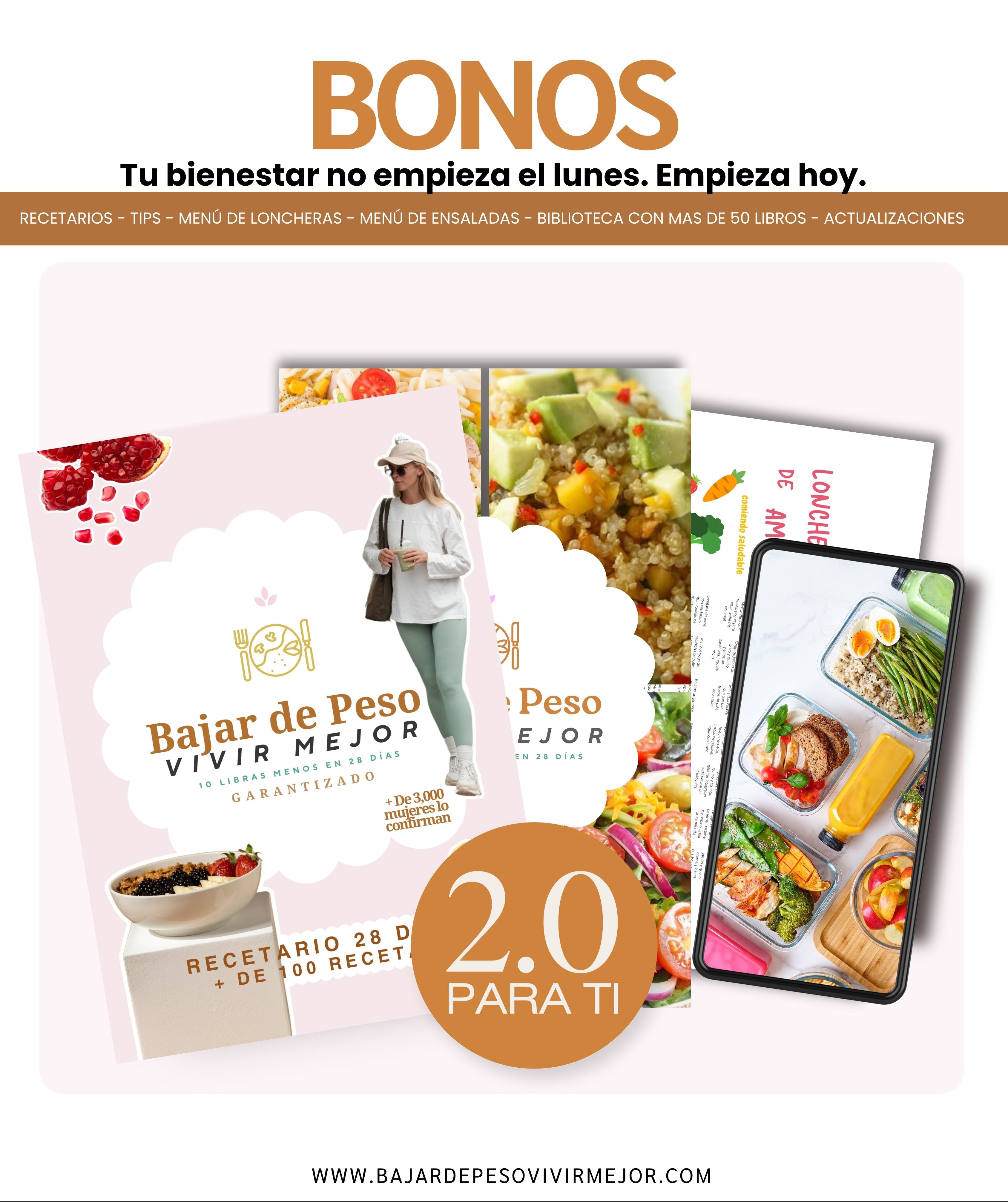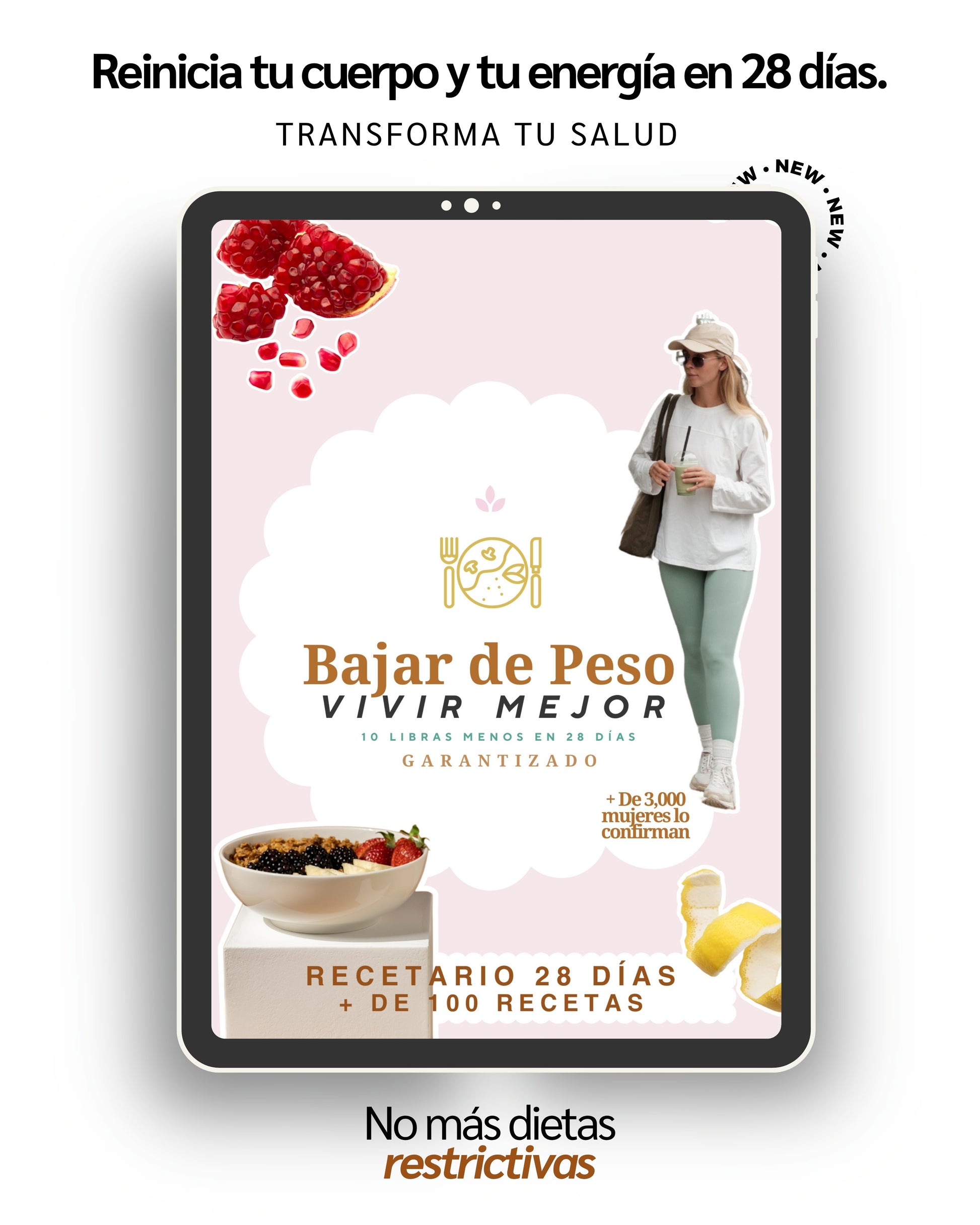 Recetario de alimentación para 28 días que ayuda a perder hasta 10 libras mientras trabaja en tu bienestar interno.